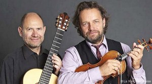 il a interprété avec brio les partitas pour violon seul, en juin 2015 c’est un duo moderne-classique qu’il proposait en compagnie de son fils et pour septembre 2016, il vient avec un ami-collègue musicien, Finn Svit, guitariste pour un concert qui promet d’être superbe. Le thème du programme est « les animaux en musique ». S’inspirant de thème écrit par des grands compositeurs comme Bach, Sarasate, Vieuxtemps… ses deux musiciens très complices proposent aussi leur propre création. En Allemagne, ils ont beaucoup tourné dans les écoles de musique, les écoles… Ils aiment partager leur passion de la musique tout en sachant se mettre à la portée de tous ; petits et grands. Un jour un enfant demande à Jochen Brusch « c’est vrai que vous pouvez faire tous les animaux qu’on veut ? », le violoniste très sûr de lui répond oui, alors l’enfant lui demande de jouer « un aigle »… hé voilà que Jochen et Finn se trouvent décontenancés car effectivement ils ont un large catalogue d’animaux en duo mais pas « d’aigle » répertorié. Aussi le soir quand Jochen Brusch rentre chez lui, il se met de suite à composer pour ravir cet enfant qui rêvait de voir l’aigle en musique. Morceau à découvrir :