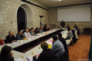 Mercredi 4 janvier, sous la salle de la mairie, les deux conseils municipaux des communes de Castelnau-Montratier et de Sainte-Alauzie, ainsi que les maires respectifs Patrick Gardes et Bernard Rességuié se réunissaient pour élire le maire de la nouvelle commune effective depuis le 1er janvier. Quelques Castelnaudais étaient présents pour ce conseil municipal qui scellait un nouveau départ. Avant de commencer, Bernard Rességuié s’est exprimé sur les actions qu’il a mené sur le territoire depuis plus de 41 ans : « j’ai travaillé pour l’avenir de notre territoire, de notre région. On aurait pu continuer seul mais il fallait voir un horizon plus lointain. Aujourd’hui nous avons une charte qui est un document de référence pour les trois ans à venir. Avec les différents maires de Castelnau-Montratier : Maître Valmary, Mme Fourniols et aujourd’hui Patrick Gardes, il y a depuis longtemps une confiance réciproque entre les deux communes. Le territoire de Castelnau est une bouée de sauvetage pour Sainte-Alauzie. Et puis 8 habitants sur 10 viennent à Castelnau pour les services qui y sont proposés », et Patrick Gardes de rajouter « qu’il est essentiel de garder dans nos zones rurales une proximité de service ». Mme Solange Bilbault, présidait avec émotion la séance d’installation de la nouvelle commune et rappelait que, dans le souci de pérenniser l’identité des deux communes, le nom des deux communes était gardé.