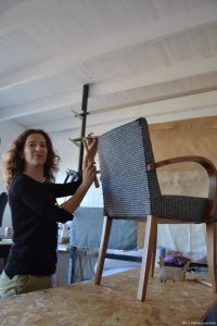 Pendant plus de 11 ans Caroline Blanc a travaillé au sein de la MJC de Cahors. Après son licenciement, elle souhaitait faire sa reconversion professionnelle dans le métier d’art de tapissière. Une passion qu’elle a toujours pratiquée à ses moments perdus, aimant chiner dans les brocantes pour ensuite restaurer les précieux objets trouvés. Une formation pendant 9 mois à l’AFPA de Decazeville, qu’elle décrit comme intense et très intéressante, alternant atelier, pratique, théorie et stage professionnel, lui a permis d’acquérir toutes les compétences sur le travail des méthodes anciennes et modernes avec les techniques, les gestes spécifiques pour aborder ce métier.