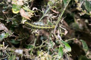 De manière pratique, les dégâts les plus importants ont lieu en juillet et en août qui sont les moments de développement des deuxième et troisième générations de chenilles. Traiter les chenilles à ces moments-là est utile mais parfois difficile à entreprendre du fait de l’importance de l’attaque. Ce qu’il faut, c’est bien nettoyer les buis au printemps. Les chenilles hivernantes vont ressortir activement entre le 1er mars et le 15 mars pour se nourrir aux alentours du 20 avril. Il faut appliquer des traitements insecticides biologiques adaptés à la chenille pendant cette période. En éliminant le maximum de ces hivernantes, il y aura peu de papillons dans vos buis en juin, donc peu de pontes et peu de dégâts en juillet/août.