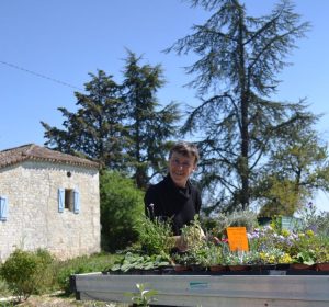 « j’aimais ce qu’elle faisait au niveau des légumes bio, vivace, aromatique… Parallèlement j’ai monté ma petite production que je vendais ensuite à Champigny-sur-Marne. C’est en 2014 que je suis arrivée dans le Quercy-Blanc. Et Le jardin des lutins est créé. Ici le sol calcaire, caillouteux, peu profond et sec ne permet pas de développer toutes les plantes. Donc je sélectionne des plantes qui conviennent à cet environnement. Je multiplie moi-même les plantes par des semis, bouturage ou division. Le travail est très saisonnier de février jusqu’au début de l’automne. Ma production est axée principalement sur les plantes parfumées et tout ce que je propose est bio. Mais je tiens à souligner que pour autant je n’ai jamais arrêté la danse. Ce sont deux activités que je mène en parallèle ».