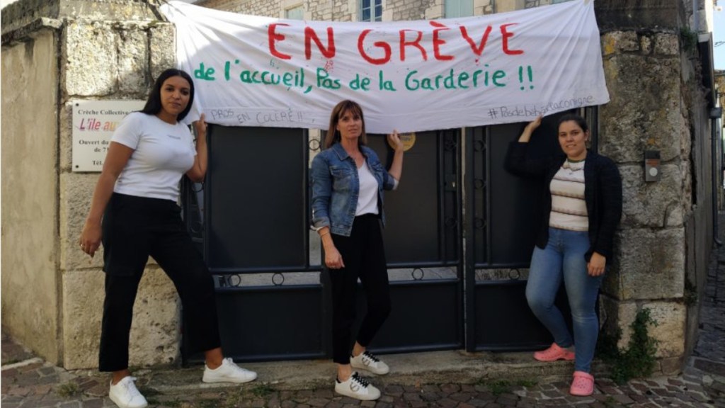 La crèche accueille d’habitude les enfants de 7 h 30 à 18 h 30 mais jeudi 8 octobre elle sera seulement ouverte de 8 h 30 à 17 h 30, sans activités particulières pour les enfants. Des banderoles seront accrochées, des salariés ne se présenteront pas ce jour-là et un accueil minimum sera assuré.