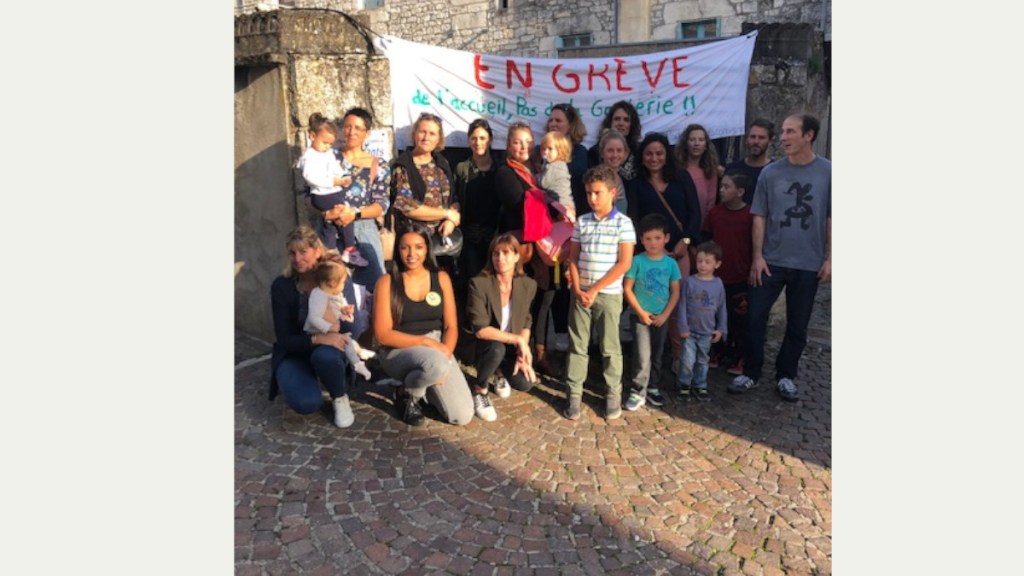 Malgré la grève, la crèche restait ouverte et tournait à minima, pour ne pas impacter trop lourdement les familles. L’accueil se faisait de 8h30 à 17h30. D’ailleurs, la plupart des familles prévenues en amont de la journée de grève ont tout à fait compris le combat des salariés de la crèche. Banderoles accrochées, vers 17h30 des parents se sont joints également au mouvement pour montrer leur engagement à maintenir la crèche ainsi que de faire perdurer une qualité d’accueil.
