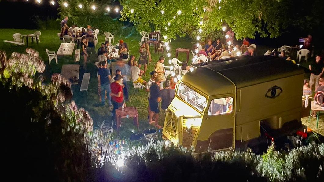 Depuis l’été 2021, en passant de Castelfranc à Albas, Thom a réussi à développer l’esprit guinguette au bord du Lot, en installant une terrasse avec vue sur la rivière, tout en proposant une restauration locale agrémentée d’animations festives en plein air. Mais avec son équipe, il souhaitait aller plus loin dans cette démarche où mélange intergénérationnel et convivialité sont omniprésents.