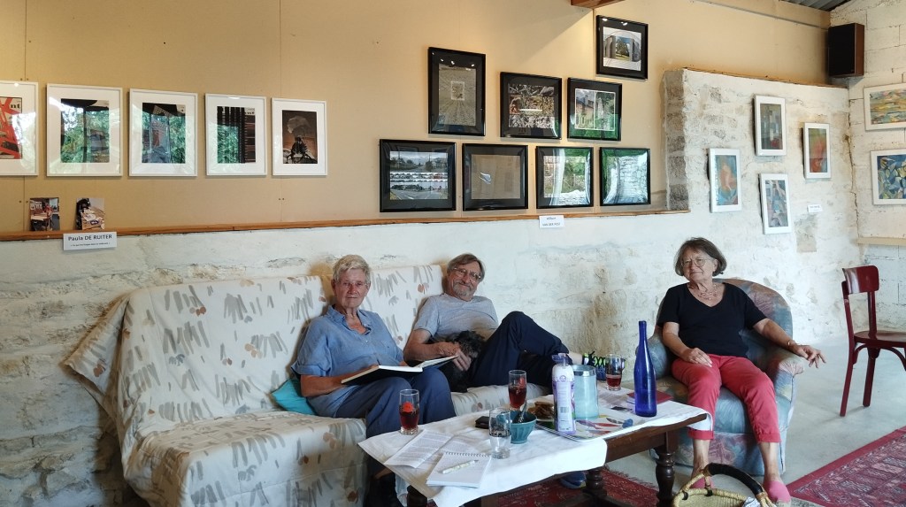 Du 27 mai au 2 juin 2024, peintres, sculpteurs, photographes sont donc à l’oeuvre. « C’est un travail exigeant, d’être du matin au soir, dans son atelier. Après chaque journée de création nous échangions beaucoup, principalement par internet, car nous étions éloignés les uns des autres. Il y avait une grande motivation. Nous avons fait des débriefings où nous avons partagé nos impressions, nous avons beaucoup ri aussi. Cela a créé une belle dynamique » confie Martine Auger. Kléber, tout en présentant le travail de chacun, souligne « Nous avons tous écrit une sorte de journal intime, une page par jour. Réaliser une œuvre quotidienne est un exercice que je pratique déjà, car je fais une aquarelle chaque jour. J’ai voulu faire découvrir cette discipline aux autres. Nous avons formé une belle équipe, nous nous sommes livrés à travers nos œuvres. Donner autant de soi est humainement très enrichissant. Le jour du vernissage, nous avons même été un peu dépassés par notre succès. Il y avait bien plus de monde que d’habitude. » Il est certain que le travail collectif autour d’un thème précis a suscité la curiosité des amateurs d’art.