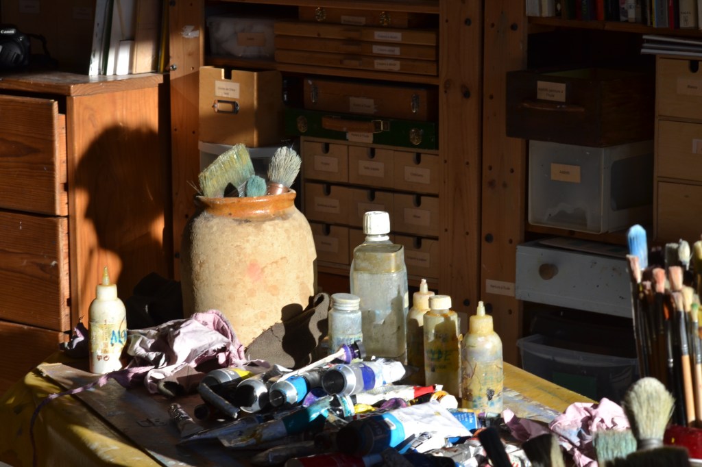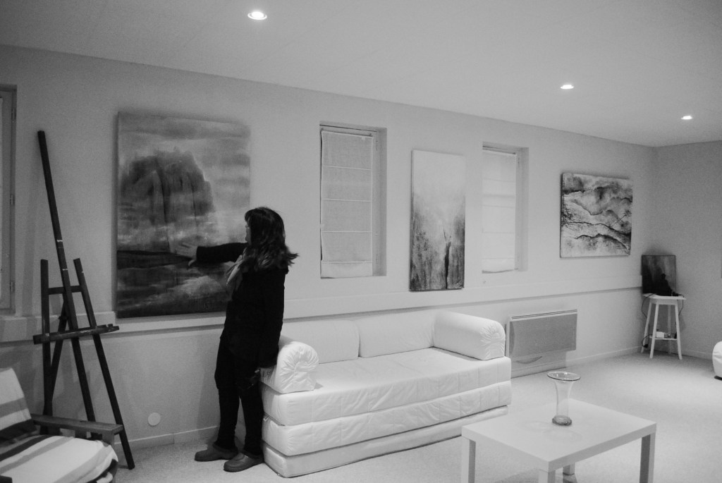 Si son travail a commencé avec l’abstraction, elle se porte aujourd’hui vers une figuration libre au travers de paysages informels effacés, déstructurés, d’eau et de pierres, de gouffres, de failles, qu’elle travaille à partir de matières naturelles et d’après l’étude de techniques anciennes, recettes médiévales, fresques romaines, art asiatique, batiks d’Indonésie…